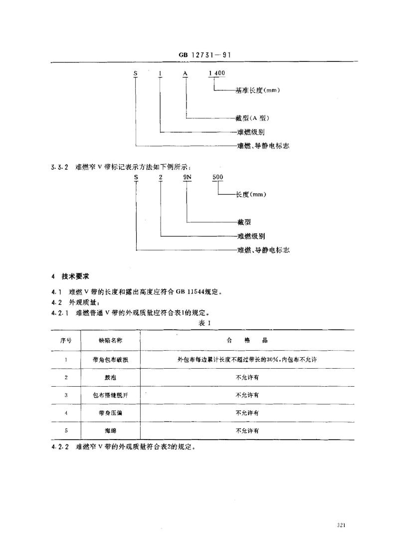 3.3.1难燃普通V带标记表示方法如下例所示:国家技术监督局1991-02-12批准320