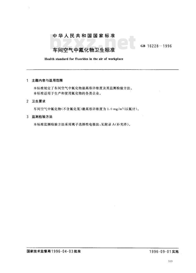 - GB 16228-1996 车间空气中氟化物卫生标准