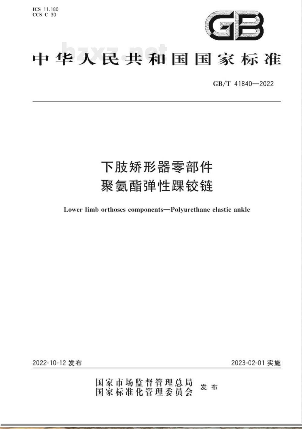 - GB/T 41840-2022下肢矫形器零部件 聚氨酯弹性踝铰链