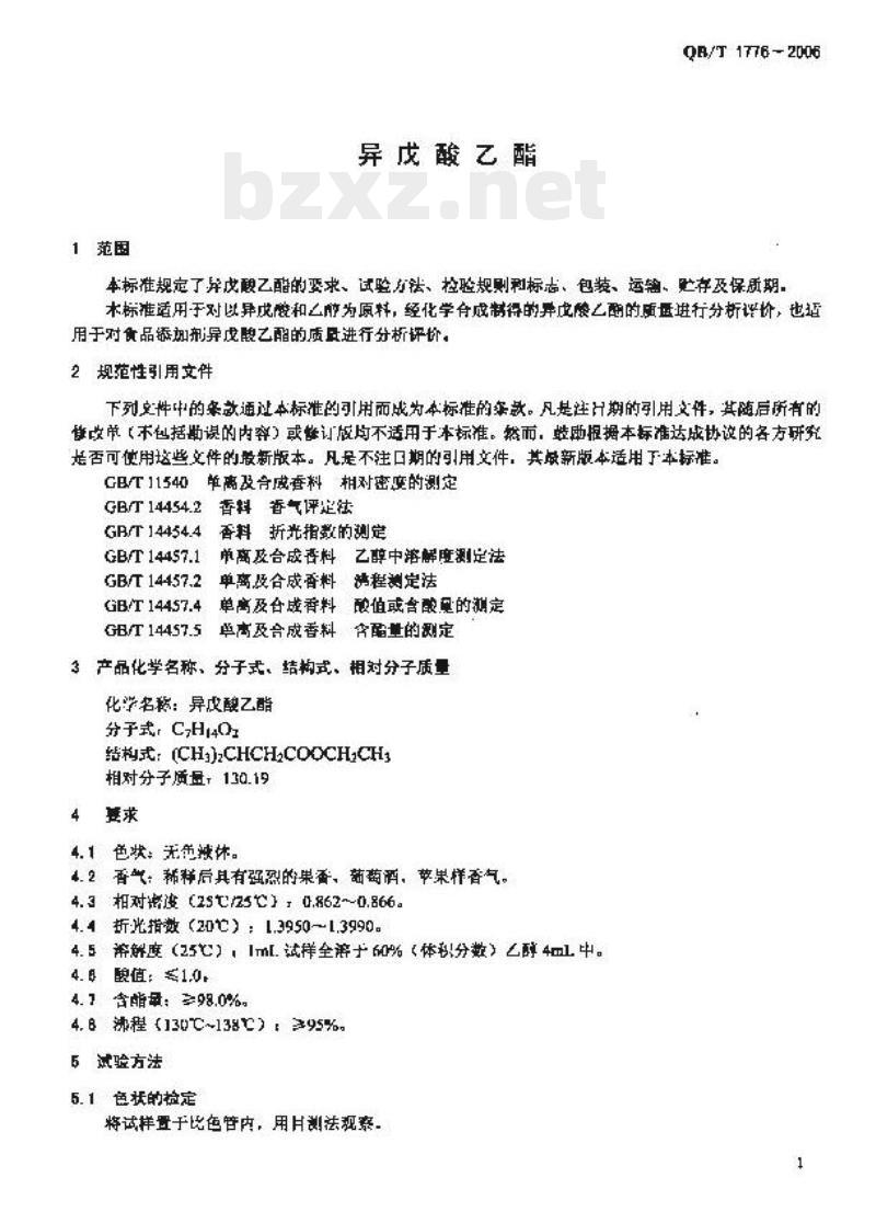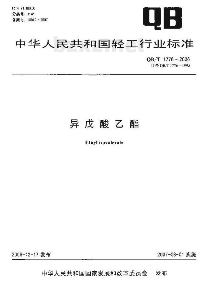 - QB/T 1776-2006 异戊酸乙酯