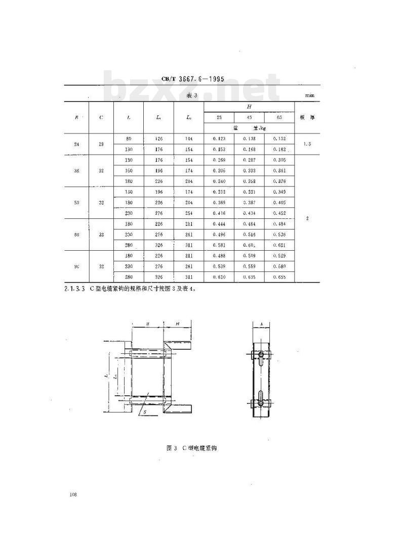 2.1.3.3C型电缆紧钩的规格和尺寸按图3及表 125