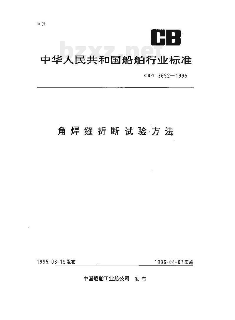 CB/T 3692规定了角焊缝折断试验的试件及试样、试件焊制、试样制备、试验程序、结果评定和试验报告。
