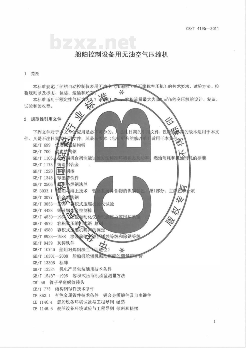 - CB/T 4195-2011船舶控制设备用无油空气压缩机