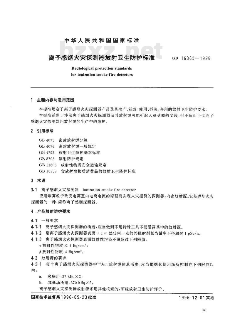 - GB 16365-1996 离子感烟火灾探测器放射卫生防护标准