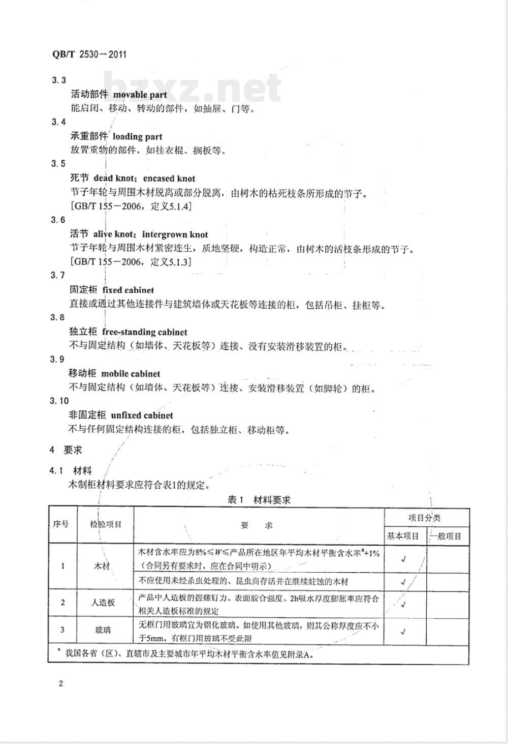 -在“术语和定义”中,增加应用了GB/T3324一2008规定术语定义和独立柜、固定柜、移动柜的定义,删除了“贯通裂缝”、“封边处理”的定义,修改了死节和活节的定义,直接采用GB/T155一2006中的定义;