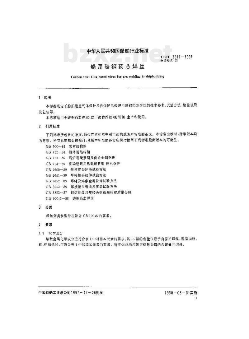 - CB/T 3811-1997 船用碳钢药芯焊丝