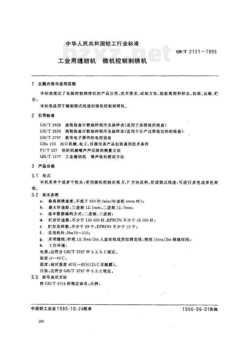 - QB/T 2151—1995 工业用缝纫机微机控制刺绣机