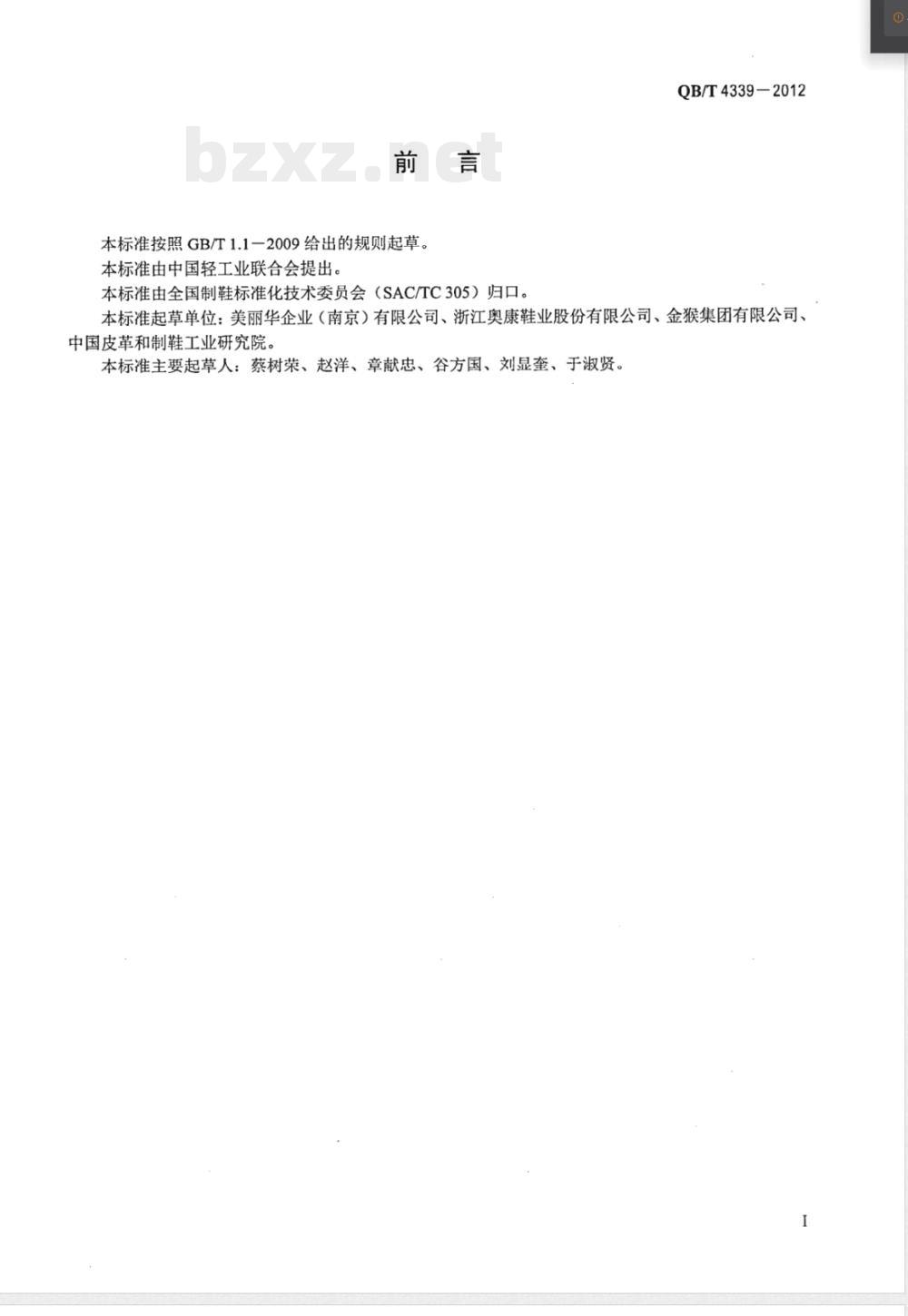本标准按照GB/T1.1一2009给出的规则起草。本标准由中国轻工业联合会提出。本标准由全国制鞋标准化技术委员会(SAC/TC305)归口。QB/T4339-2012