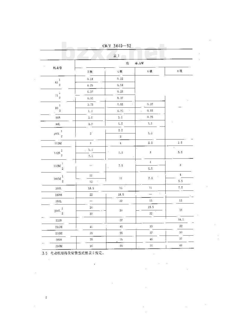 3.5克动机结均及安装型式按表2规症。率,kw