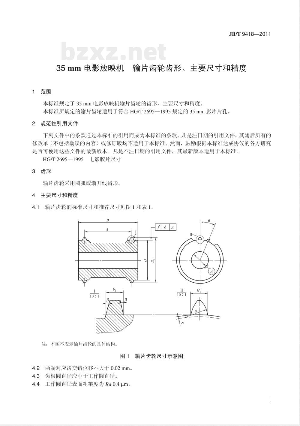- JB/T 9418-201135mm电影放映机 输片齿轮齿形、主要尺寸和精度