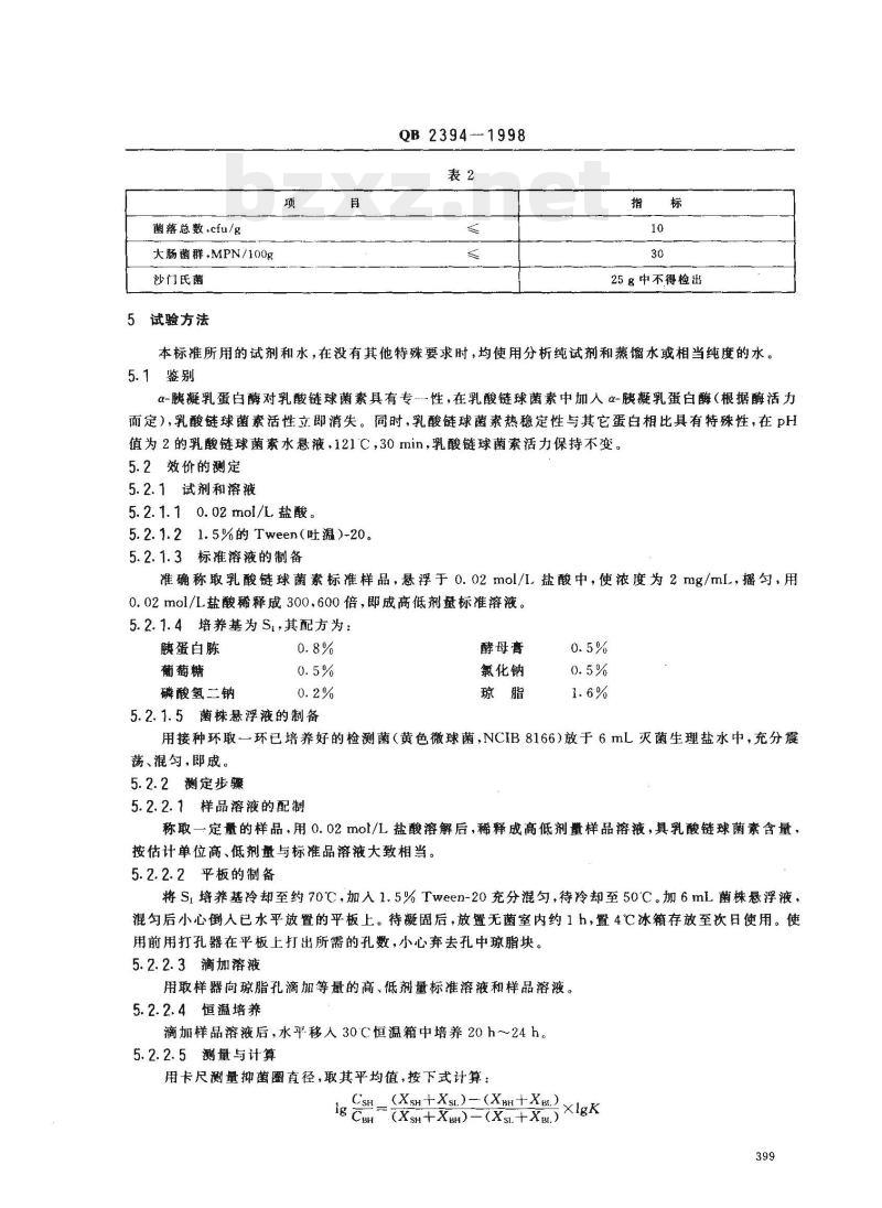 - QB 2394—1998 食品添加剂乳酸链球菌素
