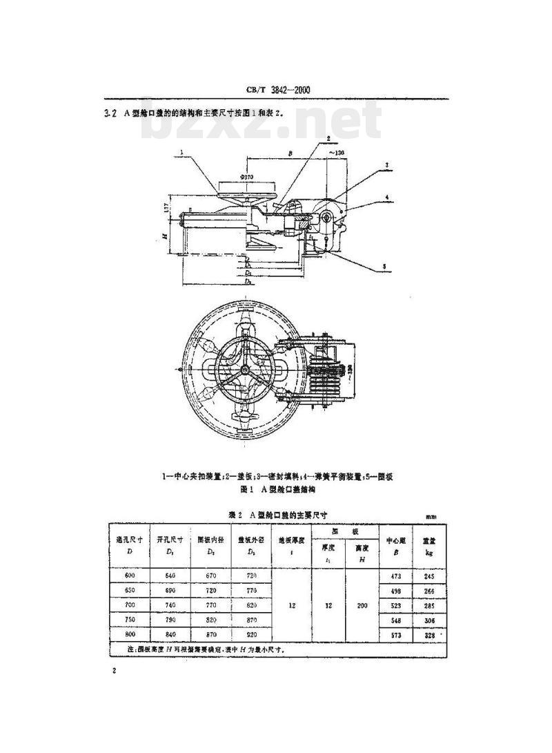 水密舱口董A800- 200 CB/T 3842- 2000
