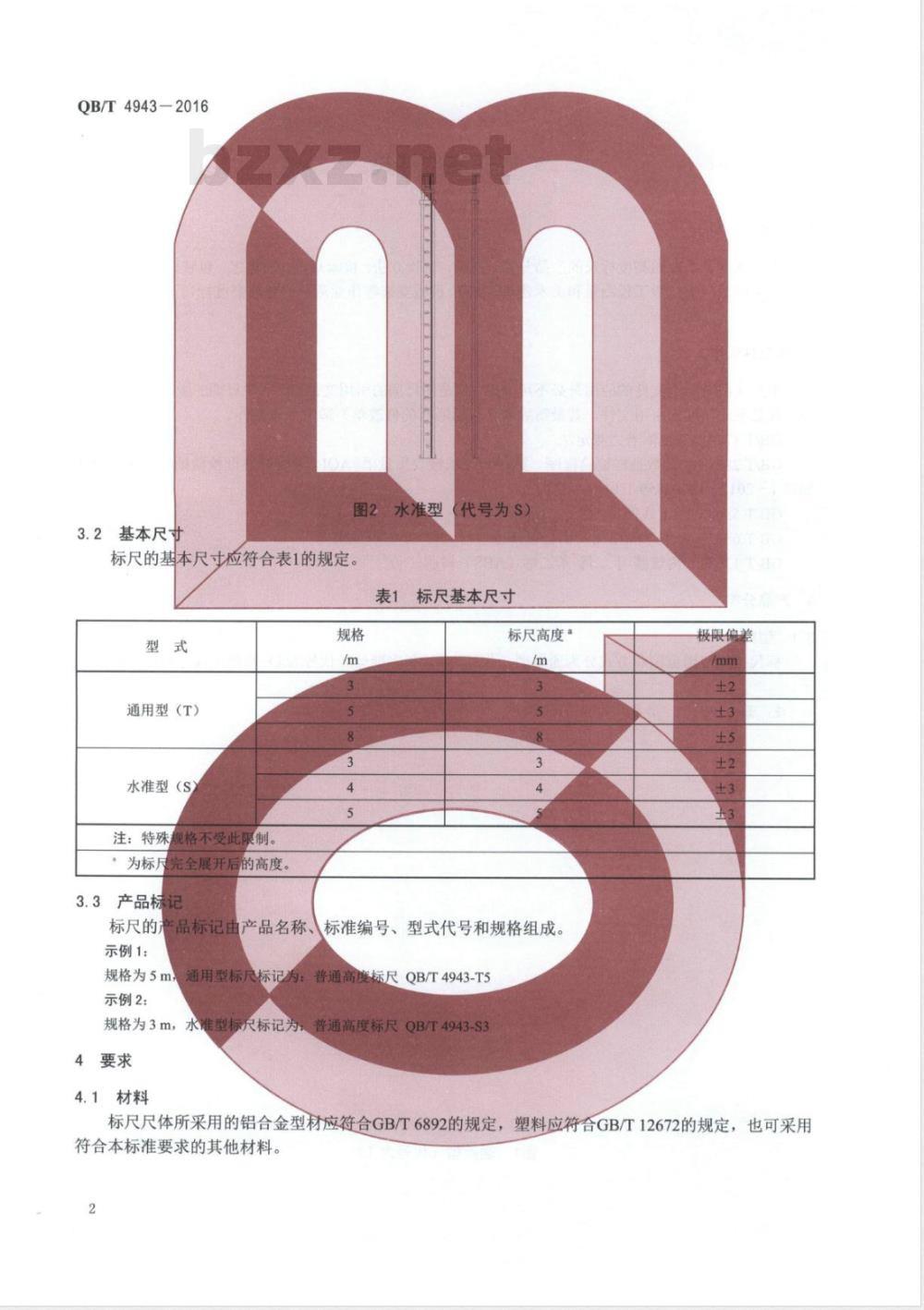 规格为3m,水准型标尺标记为普通高度标尺QB/T4943-S34要求