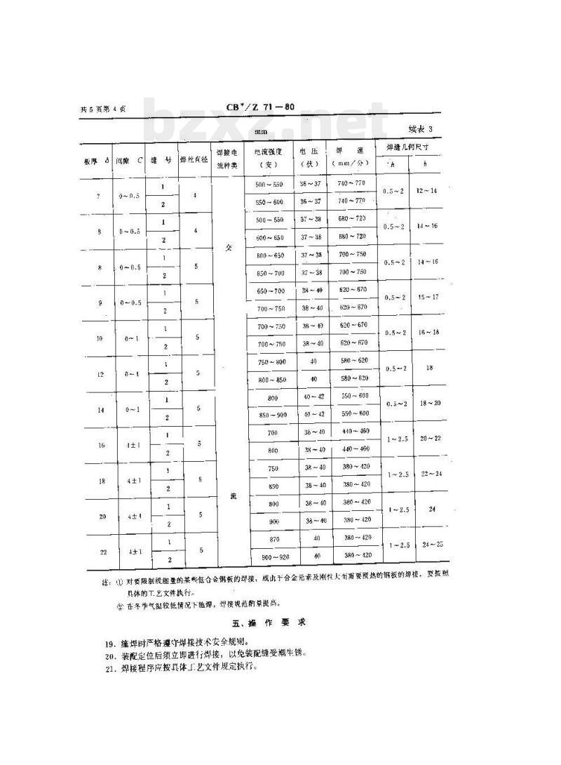 1 .CB/Z 71适用于3~22mm船舶结构用低碳和低合金钢板的无坡口双面自动对接焊。