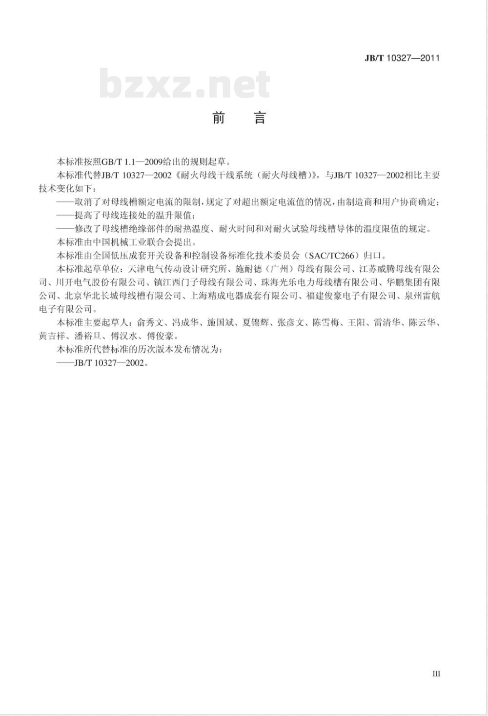 本标准代替JB/T10327—2002《耐火母线干线系统(耐火母线槽)》,与JB/T10327—2002相比主要技术变化如下: