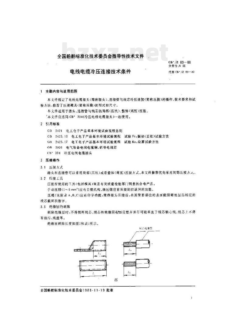 绝缘层剥除长度如图1和表1所示。全国船舶标准化技术委员会198 8-11-19 批准图