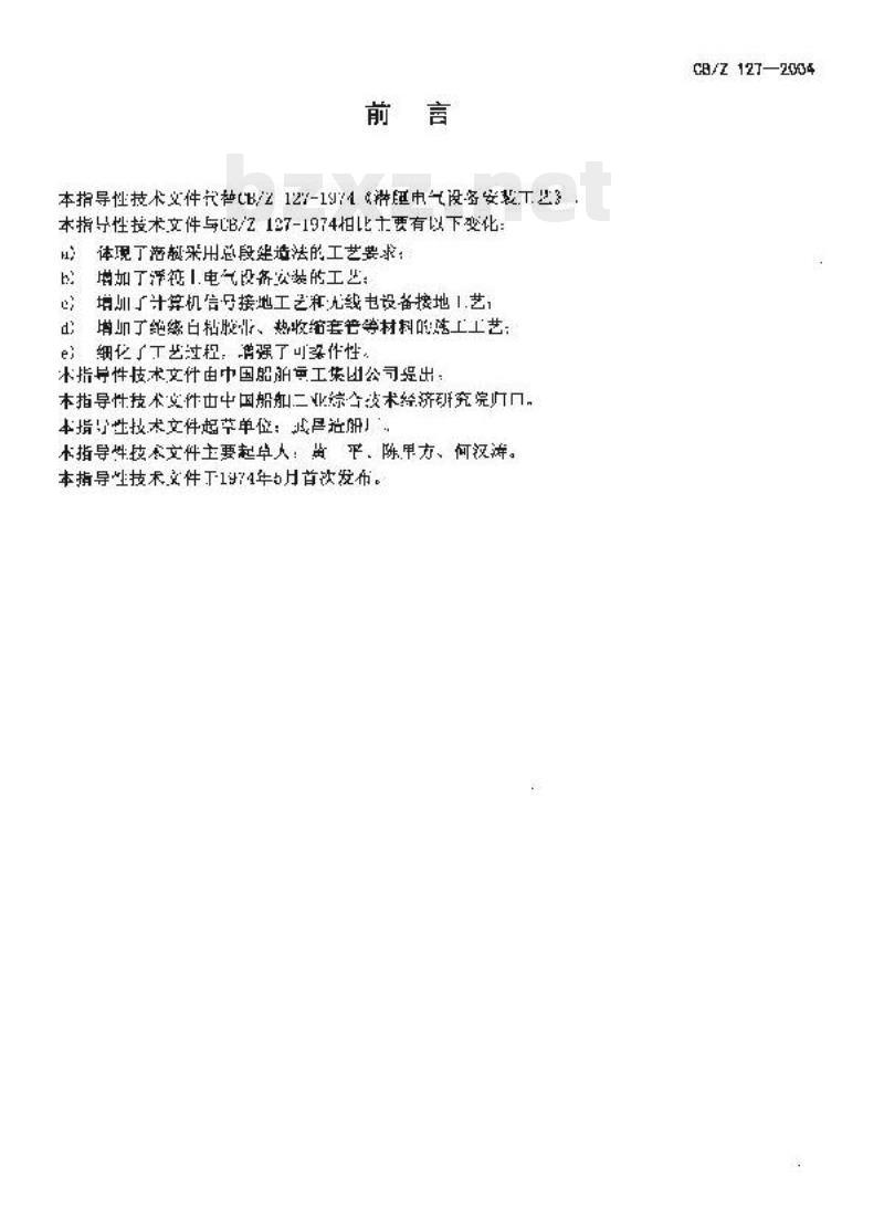 术指导性技术文件由中国船舶工集团公司提出:本指导性技术文件由中国船加二业综含技术经济研究完归口。本指了性技术文件起节单位:减范册」本指导性核本文件主要起卓人:黄平,陈里方、何汉游。本指导生技术文件于1974年5月首次发布。CB/2 127—2034