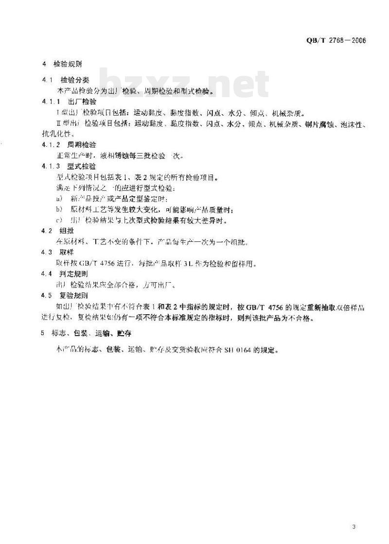I塑出!检验项日包括:运动黏度、黏度指数、闪点、水分、倾点、机械杂质。QB/T2768—2006