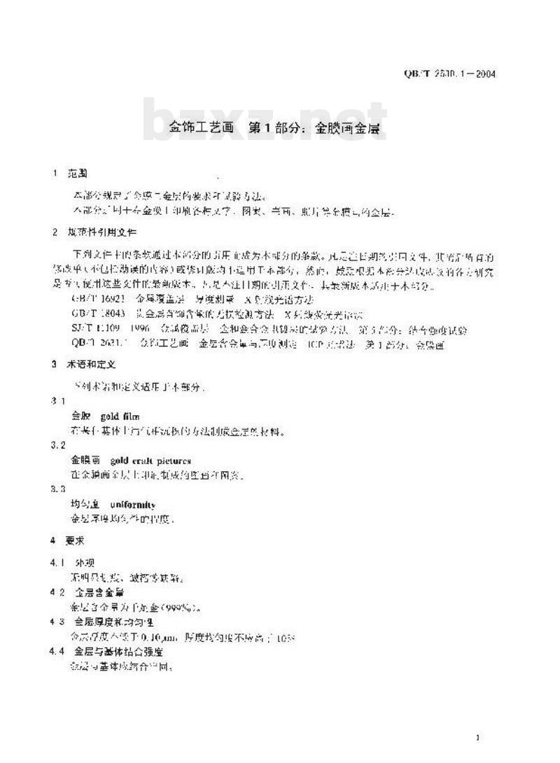 - QB/T 2630.1-2004 金饰工艺画第1部分:金膜画金层