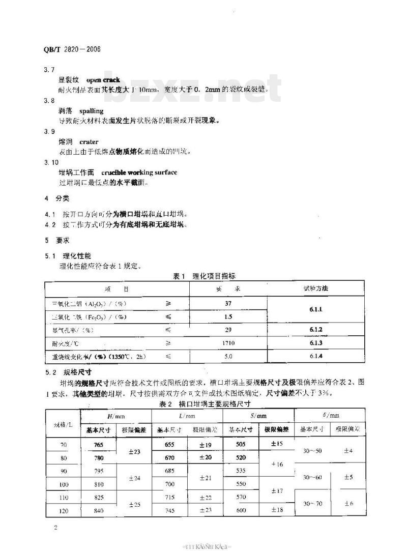 本标准规定了黏土竭的定义、分类、要求、试验方法、检验规则利标志、包装、运输、贮存,本标准适用于熔制各种玻璃、塘瓷釉料用黏土埚。2规范性引用文件