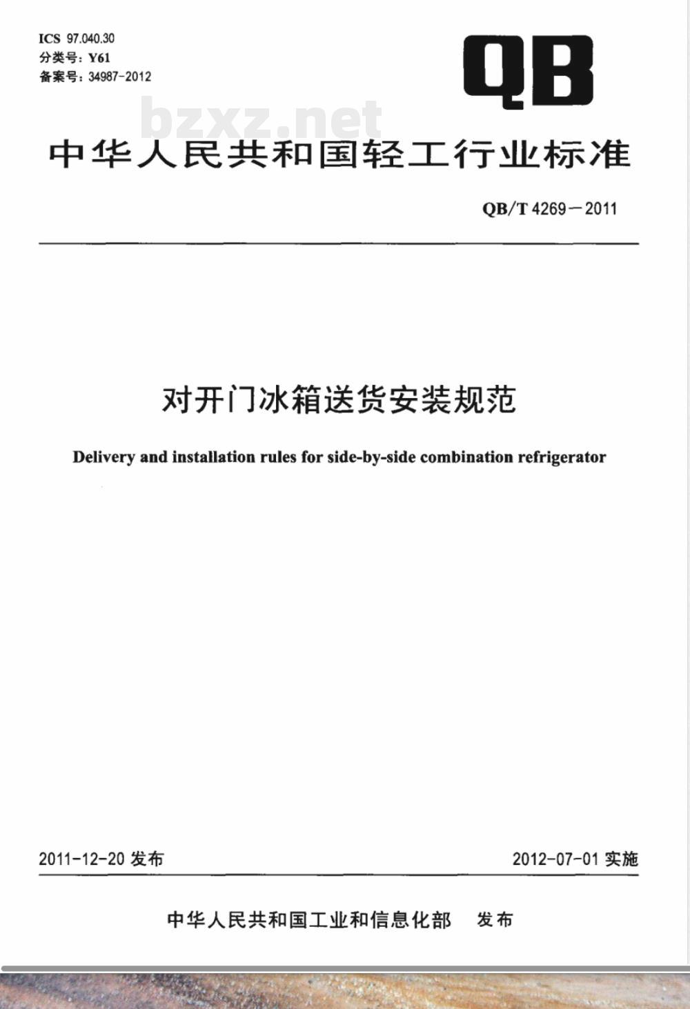 - QB/T 4269-2011对开门冰箱送货安装规范