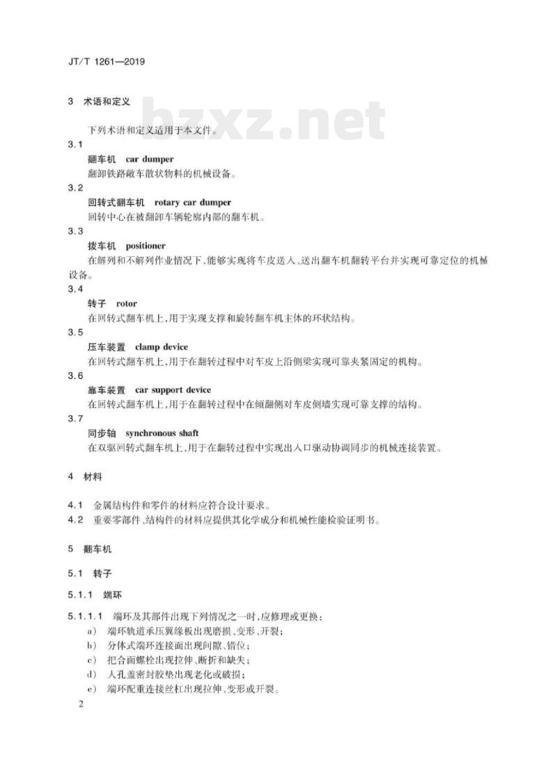 - JT/T 1261-2019 港口翻车机系统修理技术规范