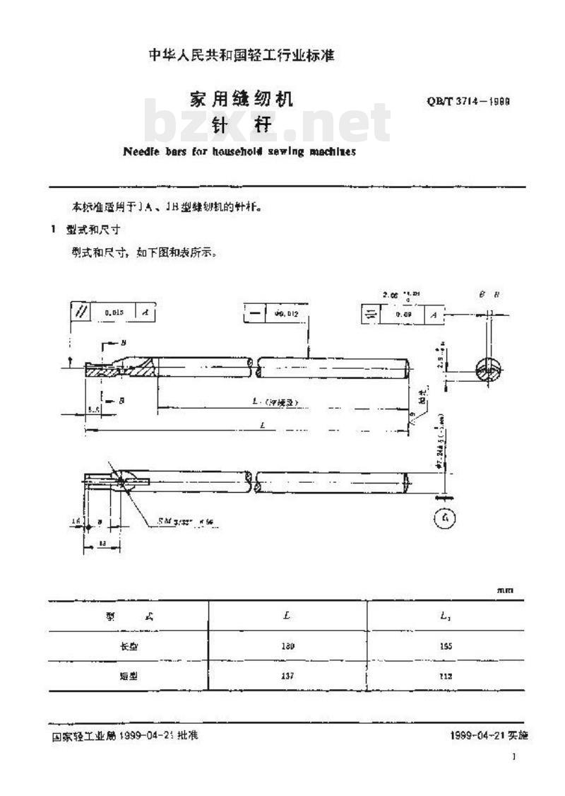 - QBT 3714-1999 家用缝纫机针杆