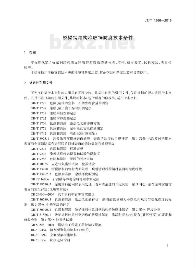 JT/T 1266适用于桥梁钢结构表面冷喷锌防腐涂装.其他钢结构防腐涂裴可参照使用。