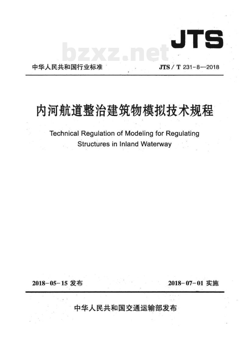 JTS/T 231-8-2018 Technical Regulation of Modeling for Regulating Structures in Inland Waterway.