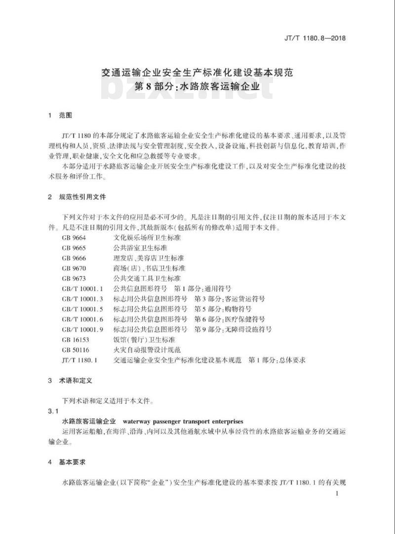 - JT/T 1180.8-2018 交通运输企业安全生产标准化建设基本规范第8部分:水路旅客运输企业