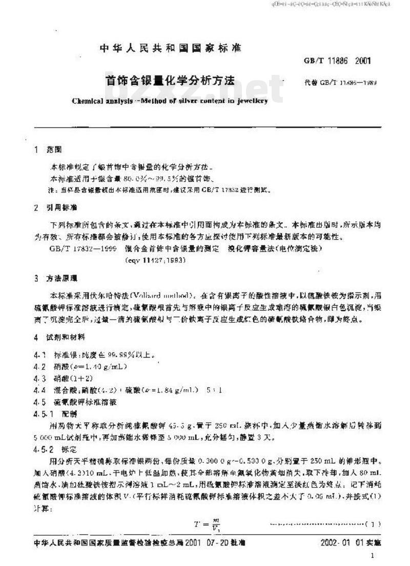 - GB/T 11886—2001 首饰含银量化学分析方法