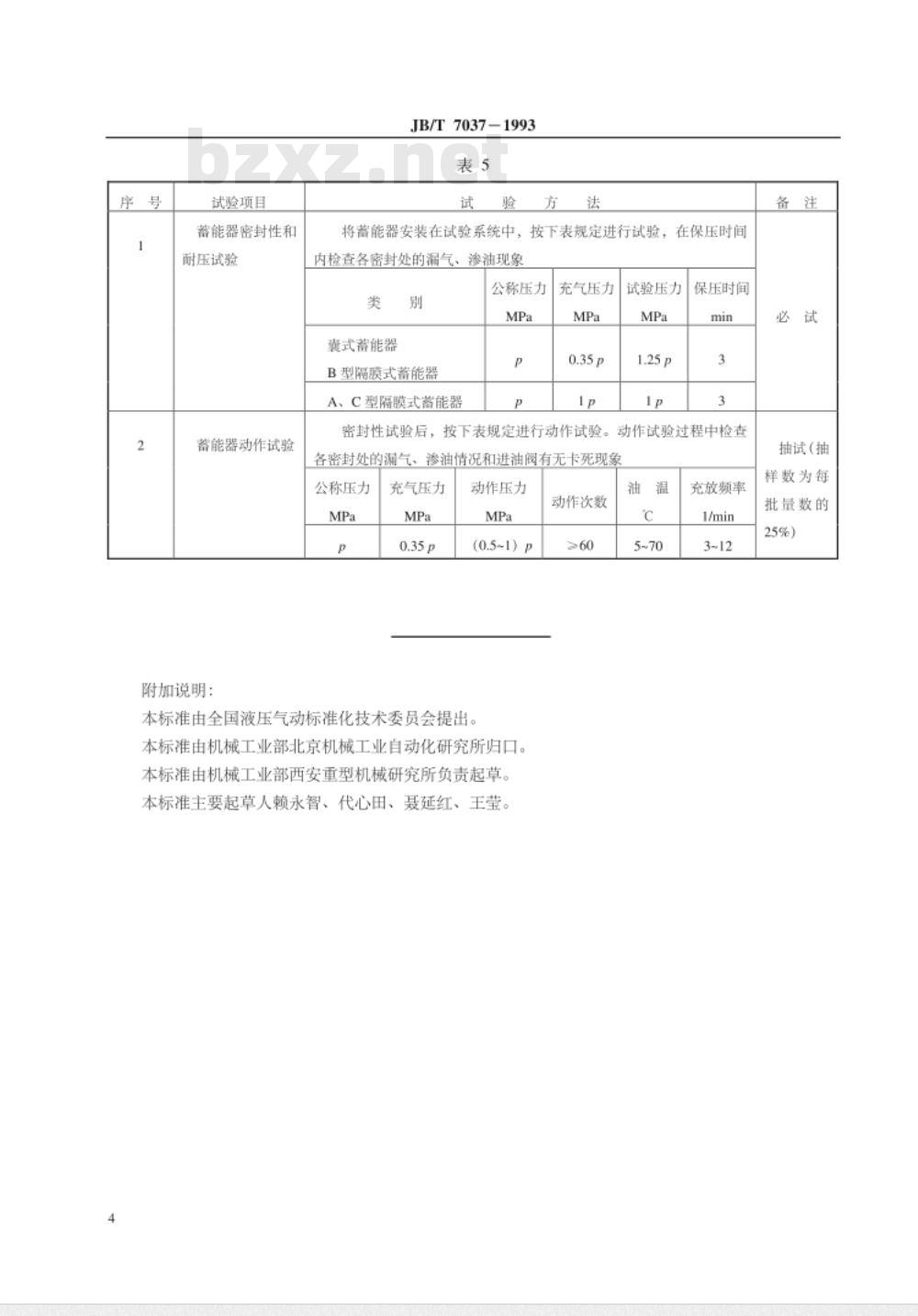 - JB/T 7037-1993 液压隔离式蓄能器 试验方法