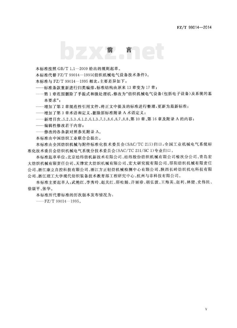 - FZ/T 99014-2014 纺织机械电气设备通 用技术条件