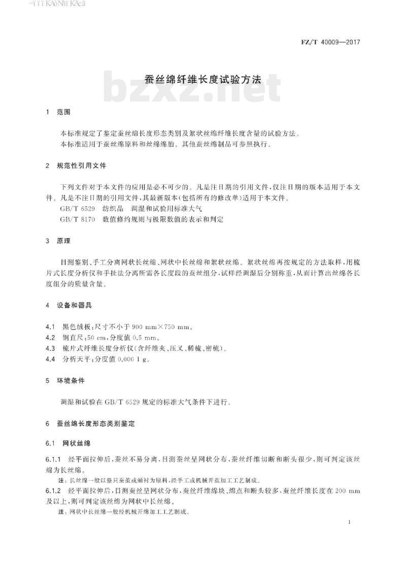 - FZ/T 40009 -2017 蚕丝绵纤维长度试验方法