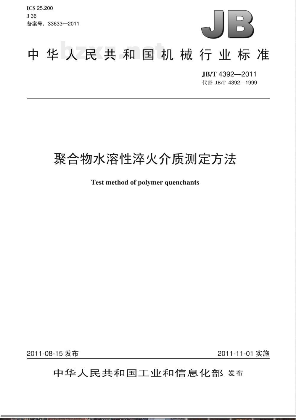 - JB/T 4392-2011聚合物水溶性淬火介质测定方法