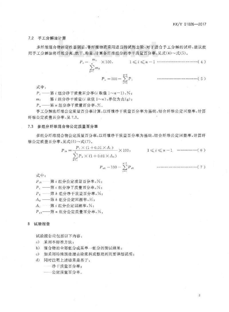 - FZ/T 01026-2017 纺织品定量化学分析多组分纤维混合物