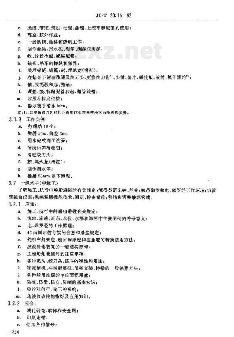 - JT/T 30.15-93 交通行业工人技术等级标准航道疏浚工程船舶水手
