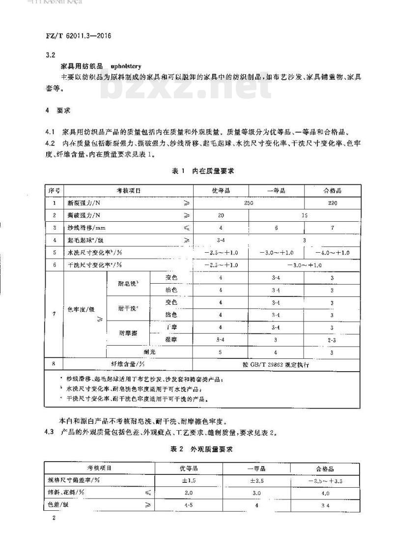 - FZ/T 62011.3-2016 布艺类产品第3部分:家具用纺织品