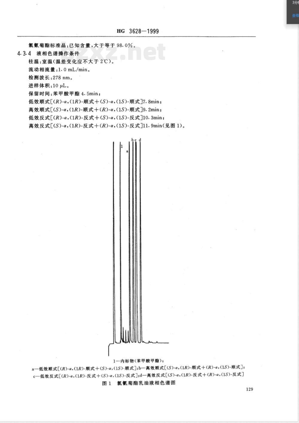 氯氰菊酯标准品:已知含量,大于等于98.0%。4.3.4液相色谱操作条件