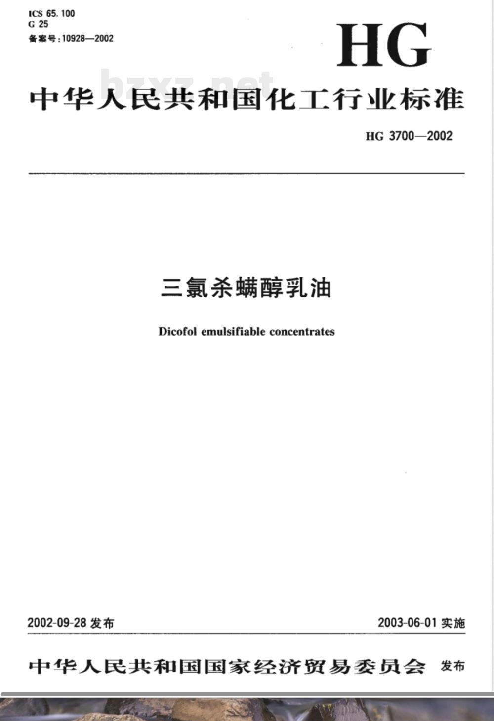 本标准规定了三氯杀螨醇乳油的要求、试验方法以及标志、标签、包装和贮运本标准适用于由符合标准的三氯杀螨醇原药与乳化剂溶解在适宜的溶剂中配制成的三氯杀螨醇乳油。