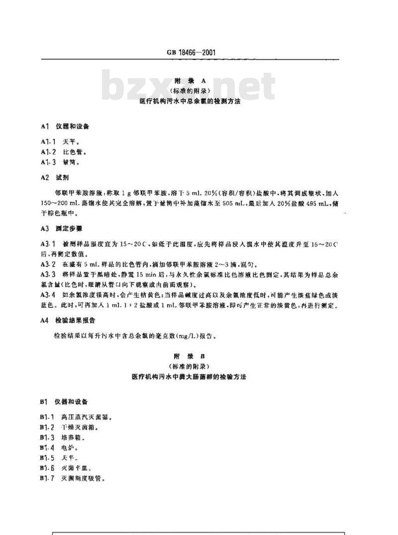 - GB 18466-2001 医疗机构污水排放要求