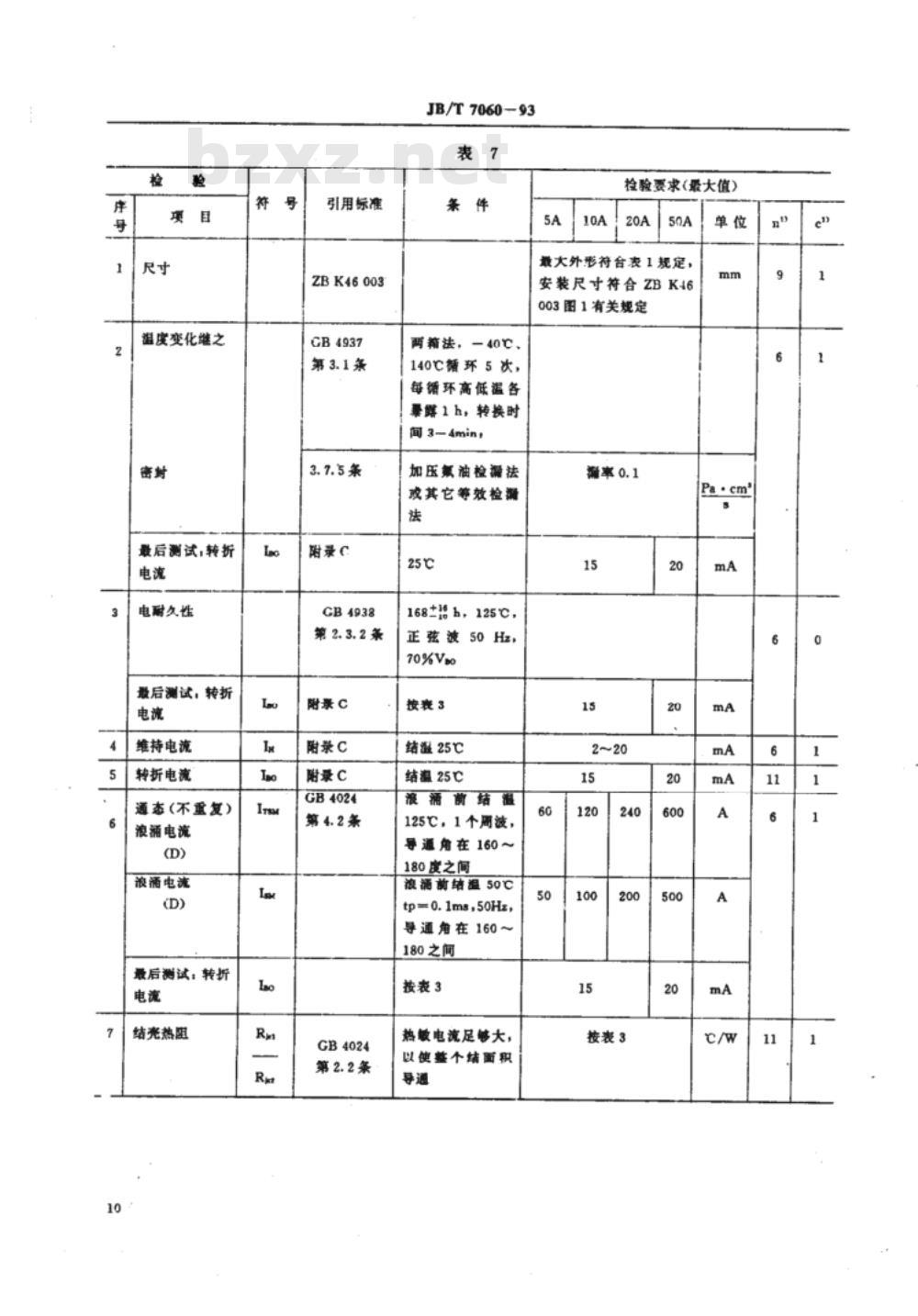 电流5A、10A、20、50A的结亮热阻。4.4转折电压的级数按表4规定。转折电压在100V以上时的误差不得超过士50V;在100V及以下时不得超过士10V。