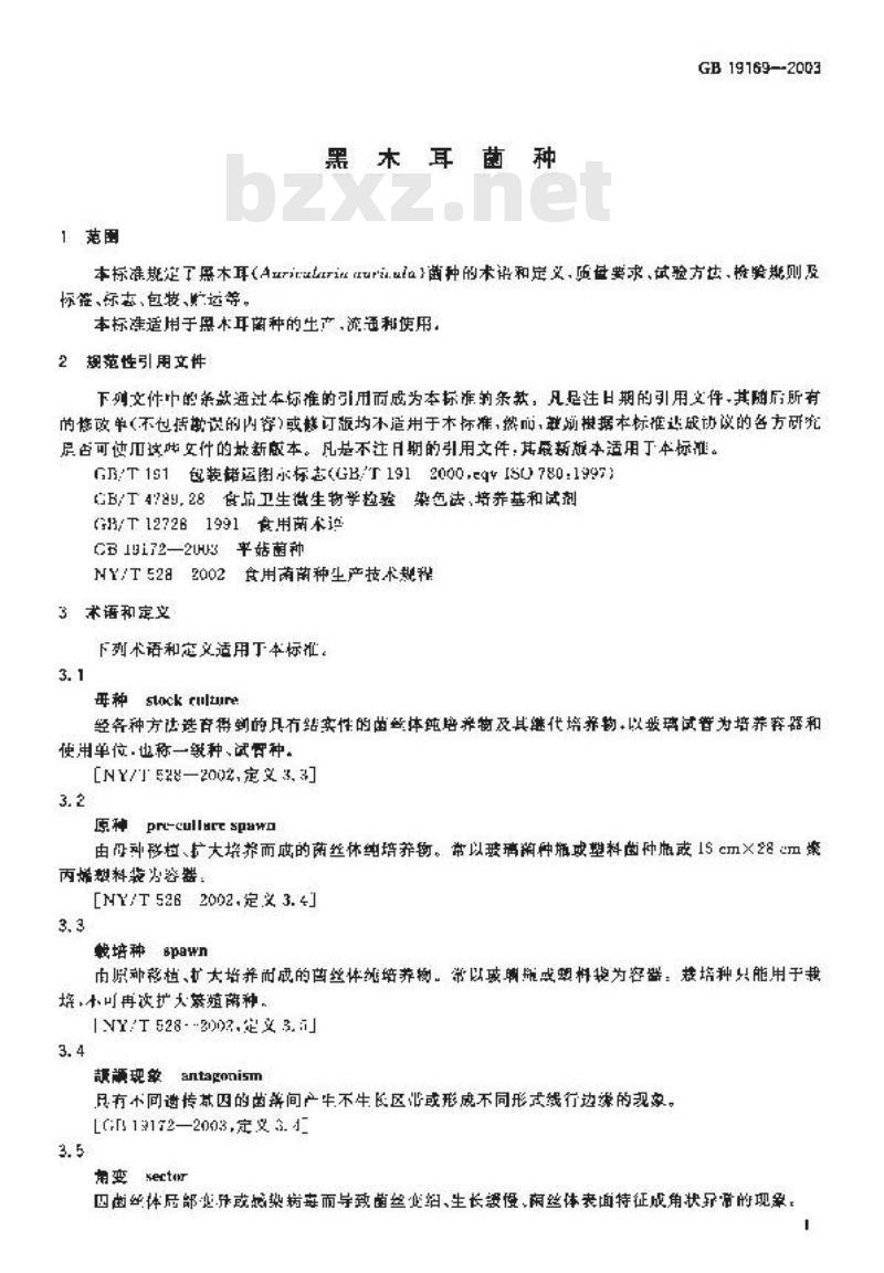 - GB 19169-2003 黑木耳菌种