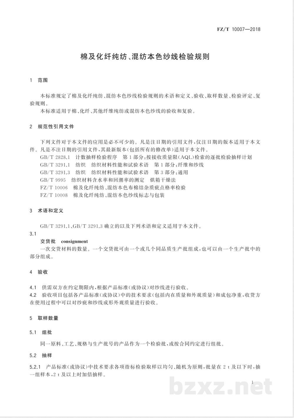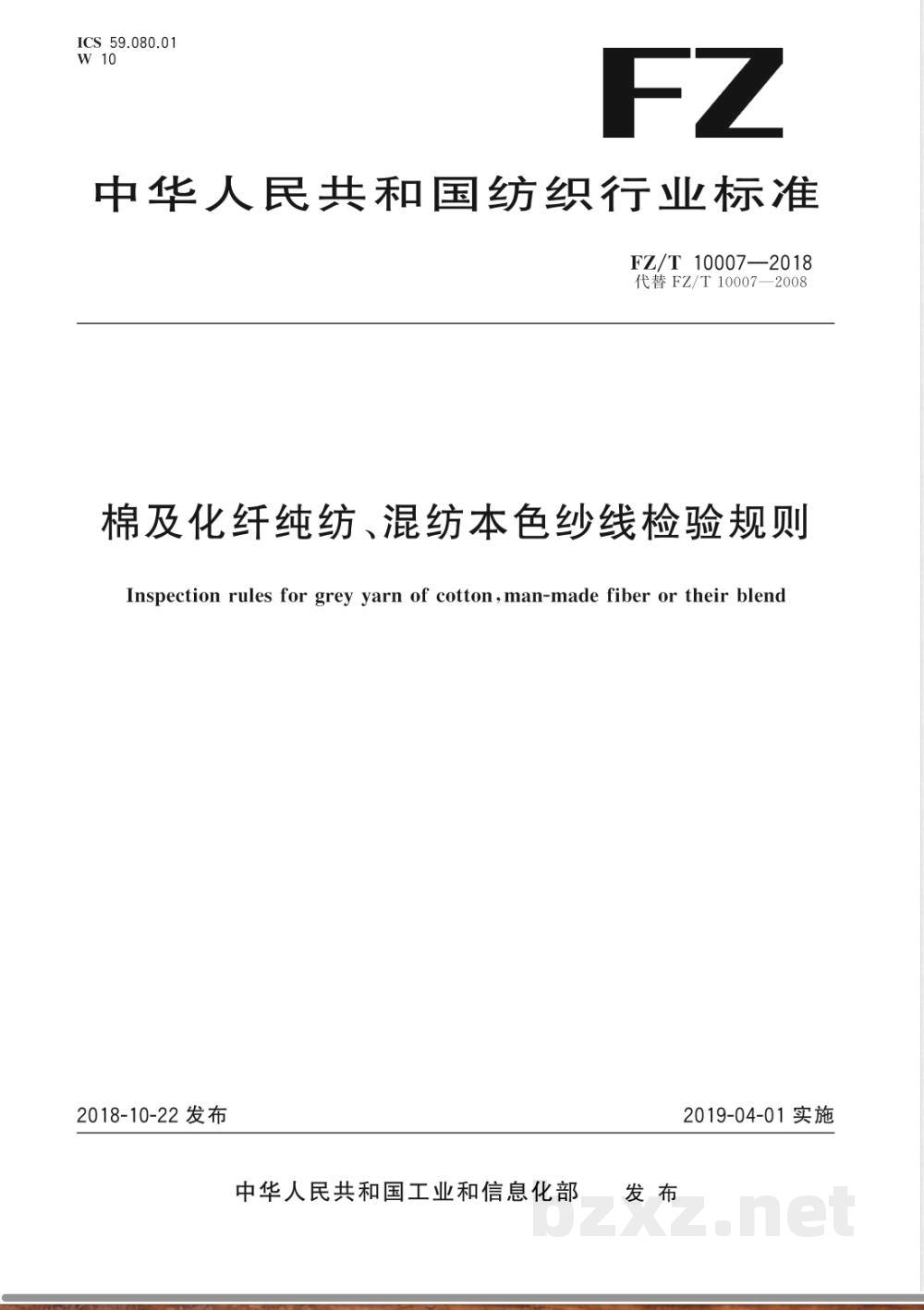 - FZ/T 10007-2018棉及化纤纯纺、混纺本色纱线检验规则