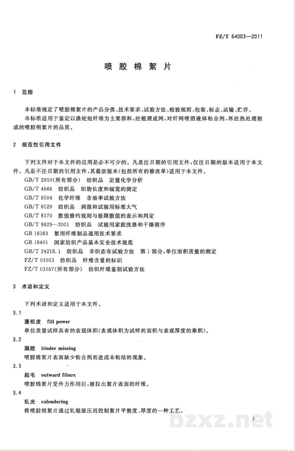 - FZ/T 64003-2011喷胶棉絮片