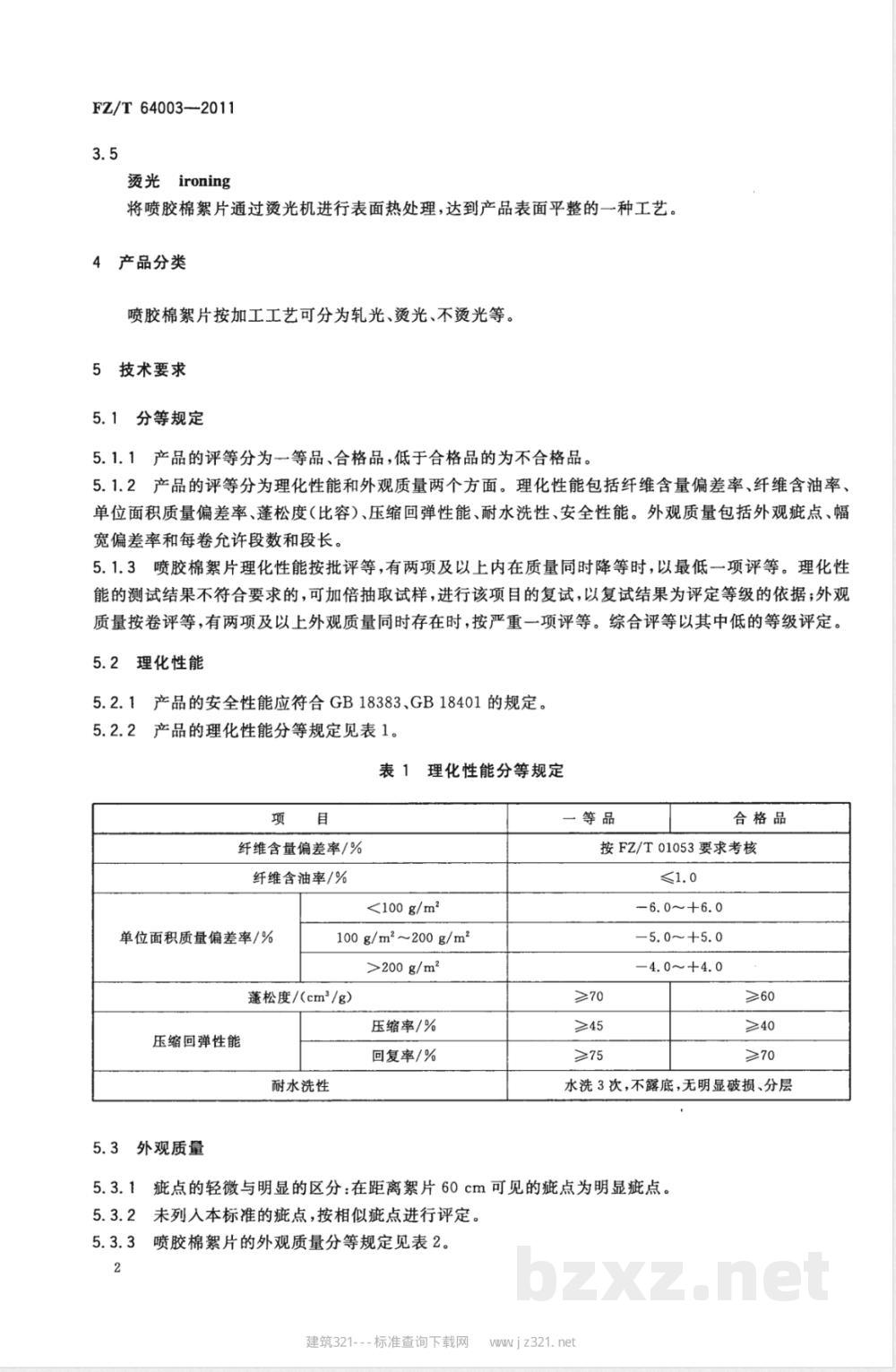 本标准适用于鉴定以涤纶短纤维为主要原料,经梳理成网,对纤网喷洒液体粘合剂,再经热处理制成的喷胶棉絮片的品质。