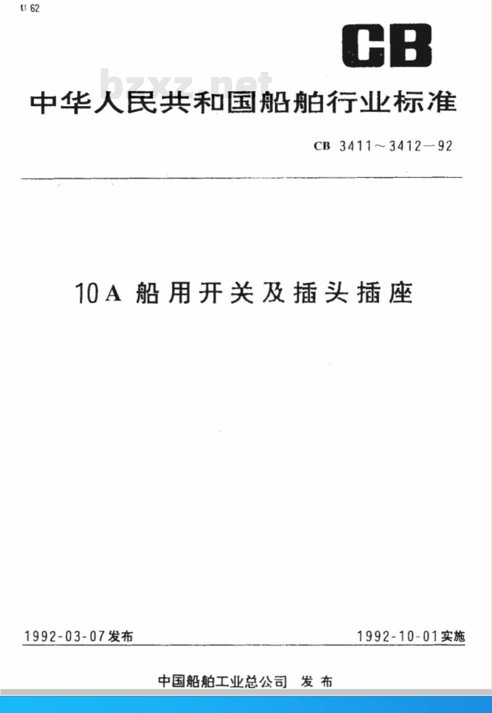 3.2插头、插座、带开关插座型号的维成形式如下:中国船舶工业总公司1992-03-07批准10