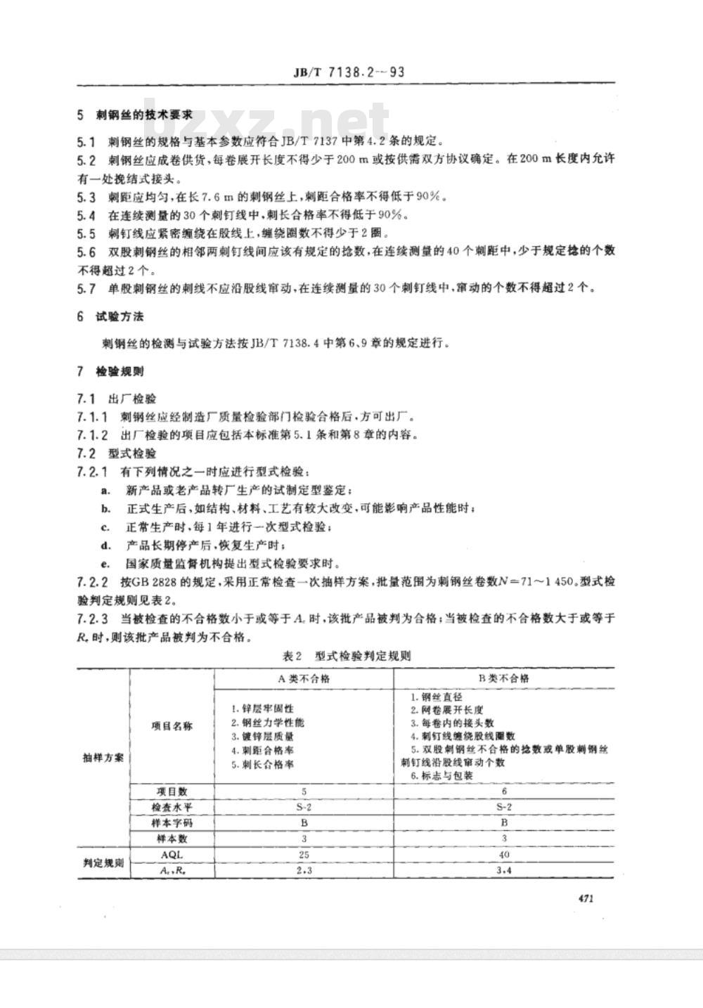 刺钢丝的检测与试验方法按JB/T7138.4中第6、9章的规定进行。7检验规则