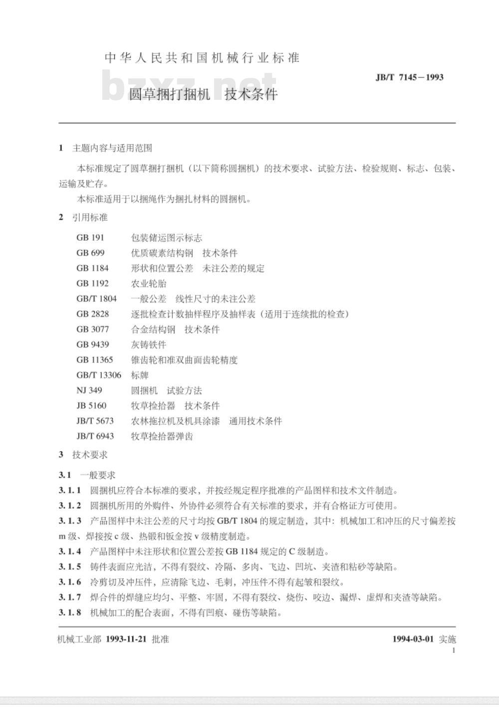 - JB/T 7145-1993 圆草捆打捆机 技术条件