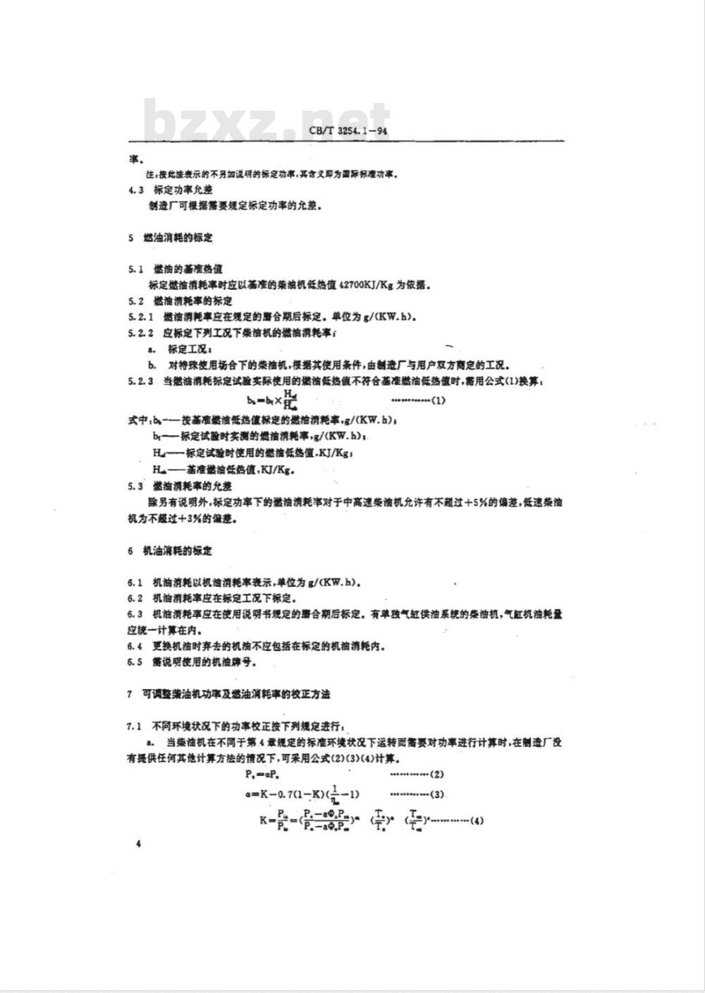 - CB/T 3254.1-1994 船用柴油机台架试验 标准环境状况及功率燃油消耗和机油消耗的检 定